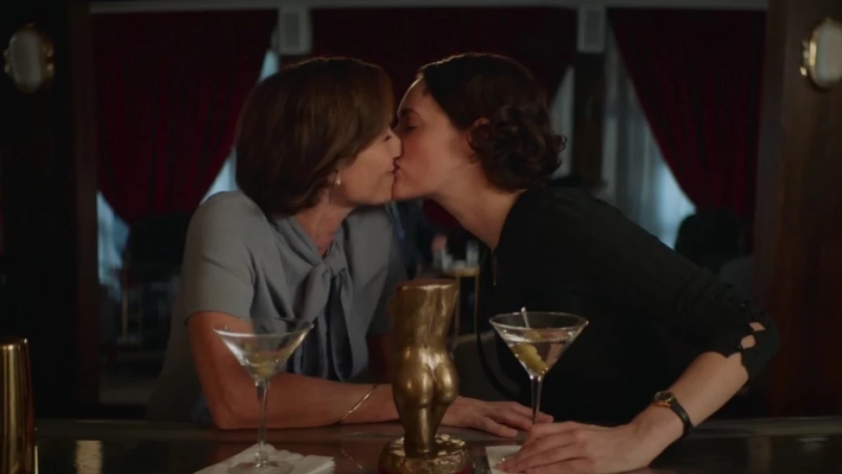 At night, inside the cafe shop. Boo laughs. She pulls Fleabag’s face close to hers.